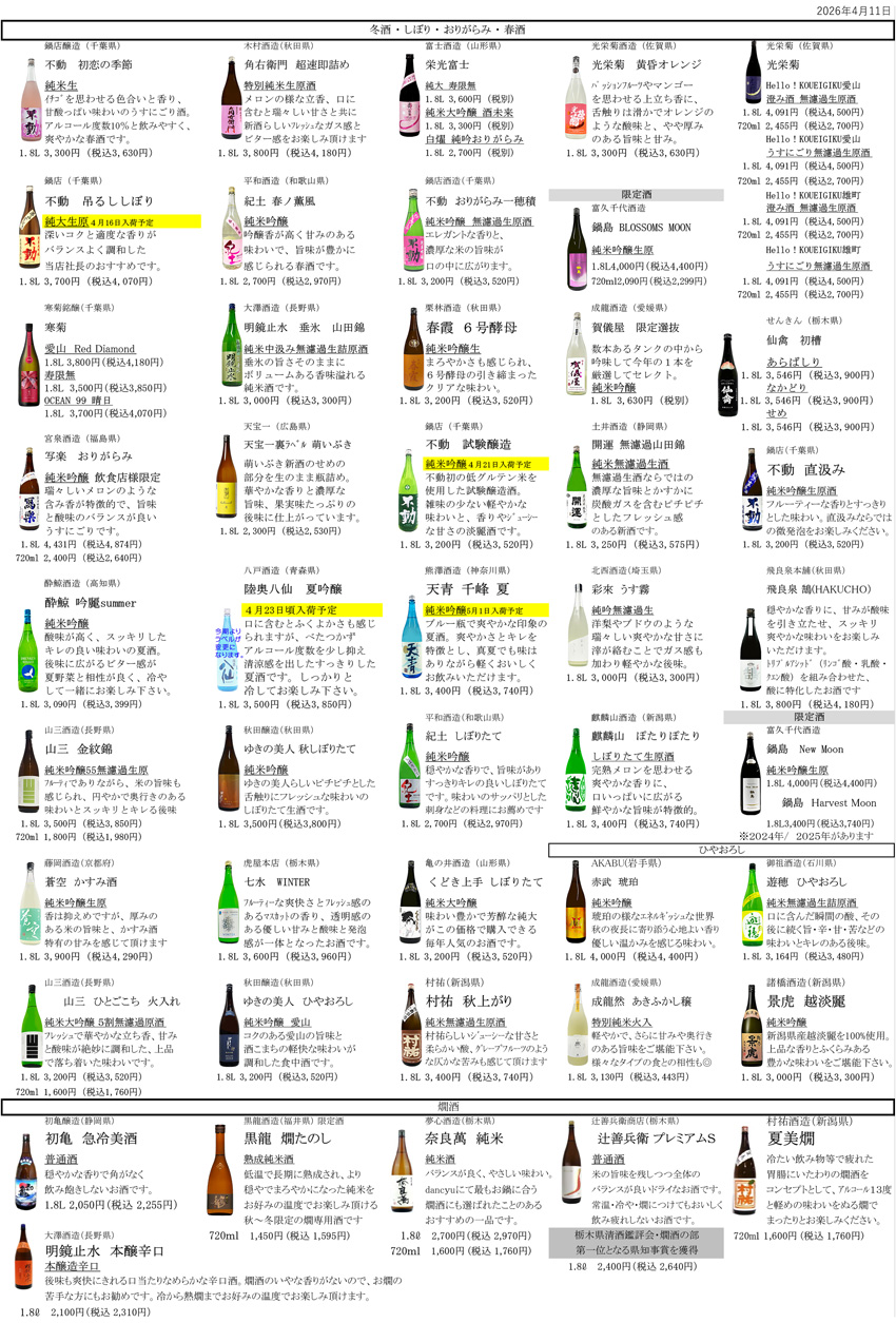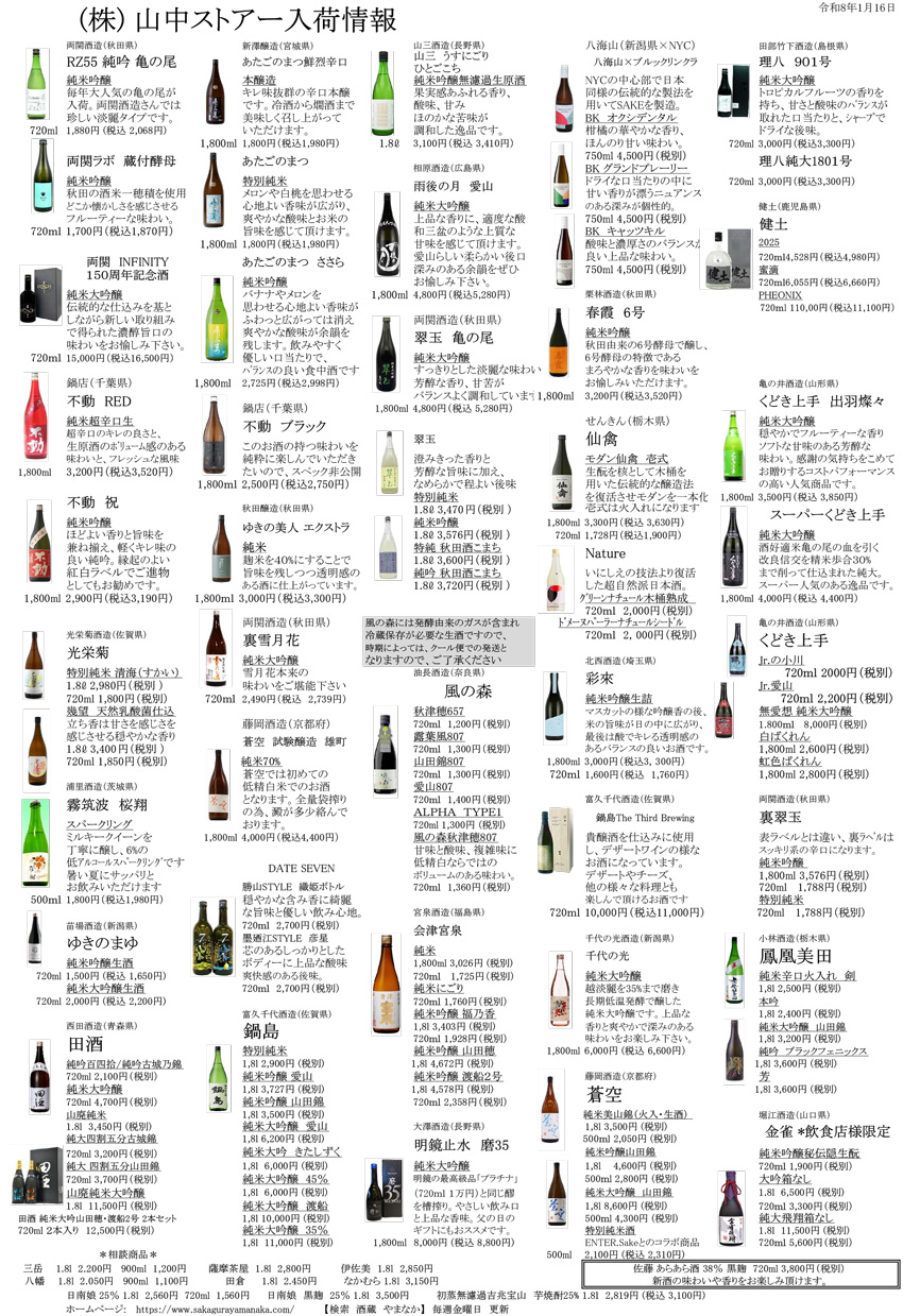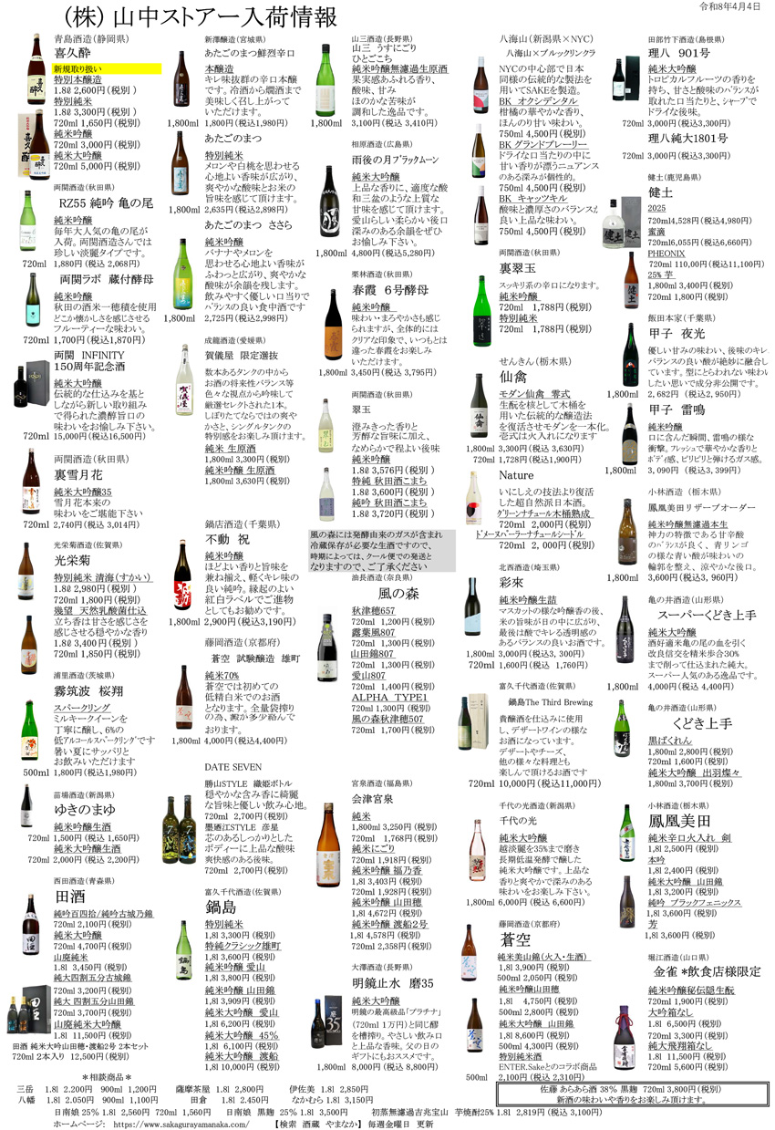 入荷情報 <<PDF>>をダウンロードして見る 在庫切れ、及び発売日前のものであっても予定数に達した場合、予告無しに受付を終了させて頂く場合がございます。予めご了承下さい。 <<PDF>>をダウンロードして見る 二十歳未満者の飲酒は法律で禁止されています。二十歳未満者への酒類の販売は固くお断り致します。 Copyright © Copyright ©sakagura yamanaka,YAMANAKA STORE Co., Ltd. TOP